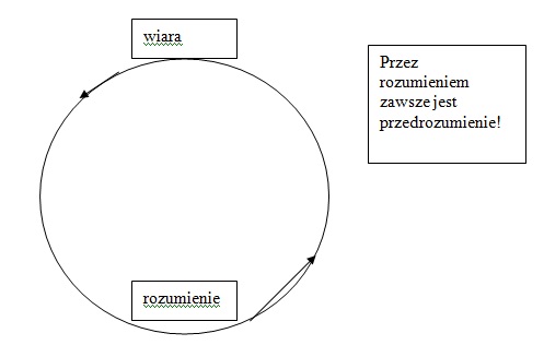 - koło hermeneutyczne – należy rozumieć, żeby uwierzyć, ale trzeba wierzyć, żeby rozumieć. Kieruje się przedrozumieniem rzeczy;