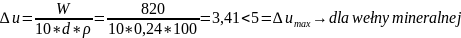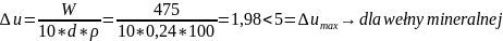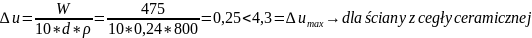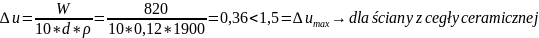 Należy jeszcze sprawdzić czy ilość powstałego kondensatu zmieści się w przegrodzie. W tym celu obliczamy przyrost wilgotności w warstwach, w których występuje kondensacja.