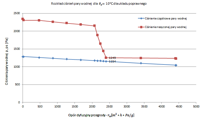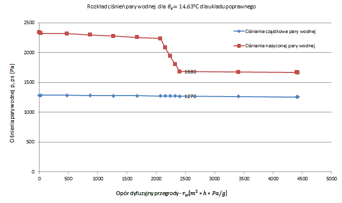 Płaszczyzna konsolidacji występuje pomiędzy warstwą wełny mineralnej oraz cegły klinkierowej. Teraz należy obliczyć ilość gromadzącej się w przegrodzie wilgoci.