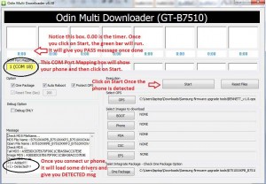 Następnie: wyłącz telefon, wciśnij na nim jednocześnie POWER oraz Q – do czasu aż na ekranie pojawi się napis „Download Mode”. Podłącz telefon, Odin powinien go wykryć.