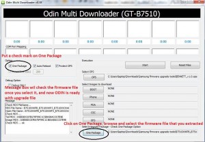 Zaznacz także „One Package” i wskaż ścieżkę do Pliku B7510XXKPB_B7510XXKP3_B7510XXOXAKP4_HOME.tar.md5