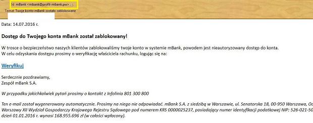 atak oszustów skierowany został przeciwko klientom mBanku.
