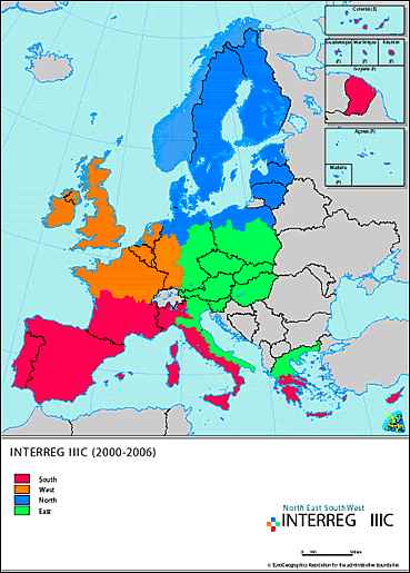Obszar współpracy w ramach INTERREG IIIC obejmuje całe terytorium Unii Europejskiej (dla celów zarządzania podzielone na cztery Strefy Programu: Północ, Południe, Wschód oraz Zachód), łącznie z wyspami i najbardziej oddalonymi obszarami. Program umożliwia uczestnictwo krajów trzecich.