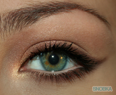Następnie delikatnym złotym cieniem rozetrzyj wszystko dokładnie na powiece, skupiając się na wewnętrznej części oka.