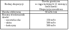 dawki promieniowania, tzw. dawki graniczne dla osób zawodowo narażonych nie mogą przekroczyć określonych wartości.