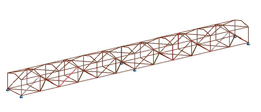 Konstrukcja składać się będzie z segmentów podporowych, przęsłowych oraz środkowych (patrz rysunki) o długościach odpowiednio 9,49m, 11,25m oraz 3,75m. Zostaną one skręcone z kratownic płaskich: osobno ściany, połacie dachu i stężenie „podłogi”. Wszystkie połączenia spawane zostaną wykonane w zakładzie wytwórczym. Na budowie będą wykonane jedynie połączenia śrubowe. Elementy wysyłkowe zostaną skręcona na poziomie terenu i podniesione przy pomocy żurawia na zadaną wysokość 12m.