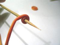 Zacznij zwijać „wężyki” na patyczku. Uwaga : jeżeli modelina zdążyła już „ostygnąć” i kruszy się, łamie przy zginaniu polecam podgrzewanie suszarką.