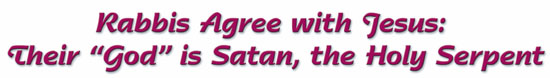 Od czasów Jezusa, jeden rabin po drugim dowiódł, że Jezus ma rację. Większość przyznaje się do ich władcy - węża. Rabini nawet zapisali swoje zło, deklarując w swoich najświętszych księgach, Talmudzie i Kabale, że wąż jest ich "towarzyszem" i "pomocnikiem". Tak święty jest wąż w ich judaistycznej religii, że rabini uważają go za "odkupiciela" i "Mesjasza".
