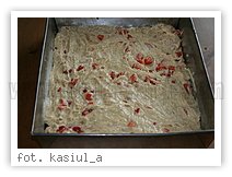 Całość wymieszać. Całość wylać na posmarowaną tłuszczem blachę, odstawić na ok 20 min: