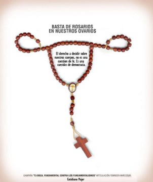 „Koniec z różańcem w naszych jajnikach” – to nowe hasło zwolenników aborcji we Francji i Hiszpanii. Zostało umieszczone na plakacie, na którym różaniec został ułożony w kształt macicy.