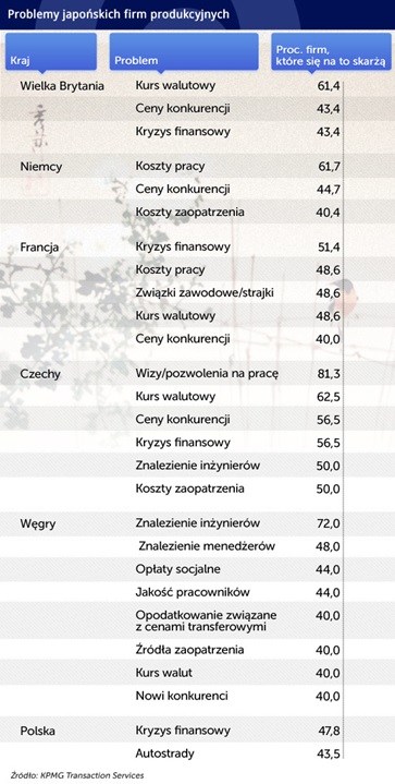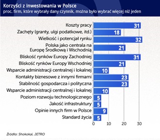 Dla firm japońskich, w szczególności zakładów produkcyjnych, inwestowanie w Polsce uwarunkowane było trzema głównymi czynnikami: