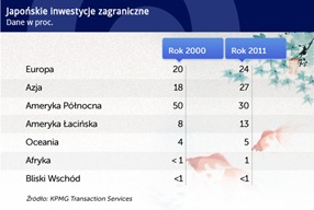 Z danych Ambasady Japonii w Polsce wynika, że w Polsce do końca 2012 roku zainwestowało około 270 podmiotów z kapitałem japońskim, którzy stworzyli w tym czasie ponad 35 000 nowych miejsc pracy. Z wyłączeniem województwa warmińsko-mazurskiego, firmy z kapitałem japońskim obecne są we wszystkich pozostałych regionach Polski. Podział regionalny prezentuje rysunek 1.