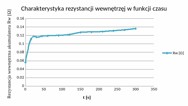 Wartość rezystancji wewnętrznej akumulatora Rw wyznaczamy z prawa Ohma wg zależności: