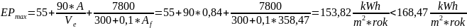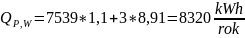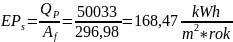 Roczne zapotrzebowanie na energię pierwotną na potrzeby ogrzewania i wentylacji oraz na potrzeby przygotowania ciepłej wody: