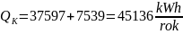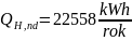 Roczne zapotrzebowanie na energię końcową na potrzeby ogrzewania i wentylacji oraz przygotowania ciepłej wody wynosi: