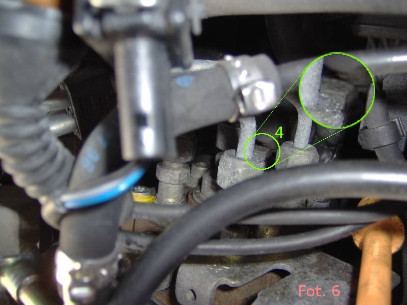 4. Luzujemy śrubę nr 4 (fot. 6) za pomocą klucza nasadowego 13 na grzechotce (dostęp jest ciężki, ale "da się"). Teraz możemy wykorzystać pozycję drugą z wyposażenia dodatkowego
