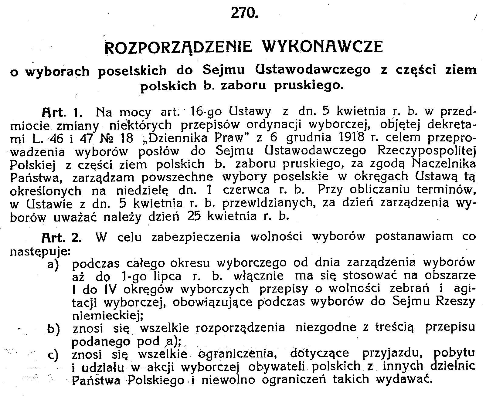 D19190270 Rozporządzenie wykonawcze o wyborach poselskich do Sejmu Ustawodawczego z części ziem pol