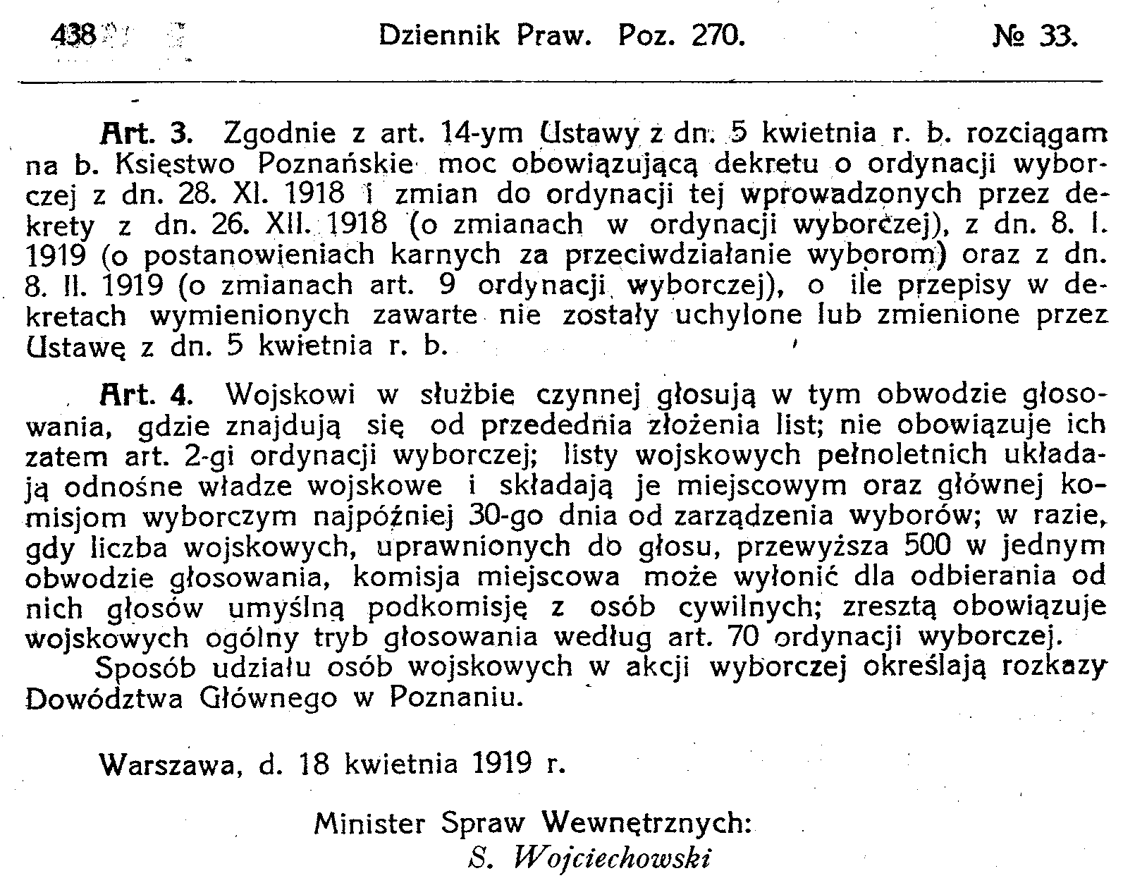 D19190318 Rozporządzenie o wyborach poselskich do Sejmu Ustawodawczego Rzeczypospolitej Polskiej w