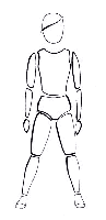 Pozycja wyprostowana, ręce wzdłuż tułowia, nogi rozstawione na szerokość bioder.