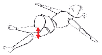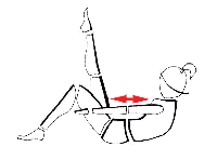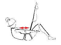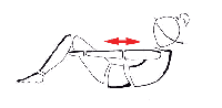 Lewą nogę zginamy w kolanie, stopa przy podłożu. Prawą nogę podnosimy do góry. Nie musi być idealnie wyprostowana w kolanie. W takiej pozycji robimy szybkie „ruch – powtórzenia” polegające na delikatnym kiwaniu się przód – tył. Rusza się część pleców oderwana od podłoża i ramiona. Nie odchylamy głowy do tyłu.