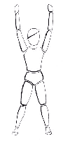 Pozycja wyprostowana, ręce w górze, nogi rozstawione na szerokość bioder.