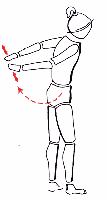 powolnym wyciągnięciu ręki przed siebie, zgięciu kolan,