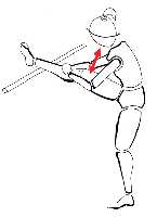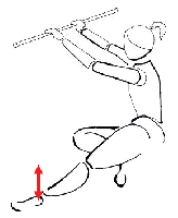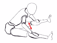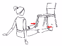 Siadamy na lewym pośladku przed drabinką lub krzesłem.