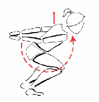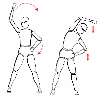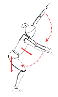 Wykonujemy drobne ruchy góra – dół pochylonym tułowiem.