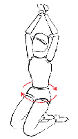 Klękamy. Siadamy na piętach. Stopy wyprostowane. Wyprostowane ręce krzyżujemy nad głową.
