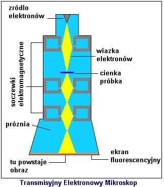 Zasada dzialania sprowadza się do nadania wiązce elektronów uzyskanej dzięki termoemisji, energii i skierowanie jej na cienką warstwę badanego materiału. Elektrony przechodzą przez tę warstwę z małą stratą energii. Podczas przenikania przez materię elektrony ulegają ugięciu. Ugieta wiązka elektronow przechodzi dalej przez odpowiednio dobrane co do kształtu i rozkładu natężeń obszary pól magnetycznych i elektrycznych, stanowiących tzw. Soczewki elektronowe. Działają podobnie jak soczewka obiektywowa i okularowa w mikroskopie optycznym wytwarzają powiększony elektronowy obraz przedmiotu na fluoryzującym ekranie. Mikroskopy takie są stosowane głównie w badaniach krystalograficznych, biologicznych i medycznych na poziomie atomowym.