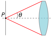 polowa maksymalnego kąta pod którym światło może padać z punktu