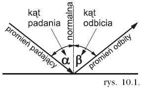 Prawo odbicia światła kąt padania jest równy kątowi odbicia a promień padający, odbity i normalna leżą w jednaj płaszczyźnie.