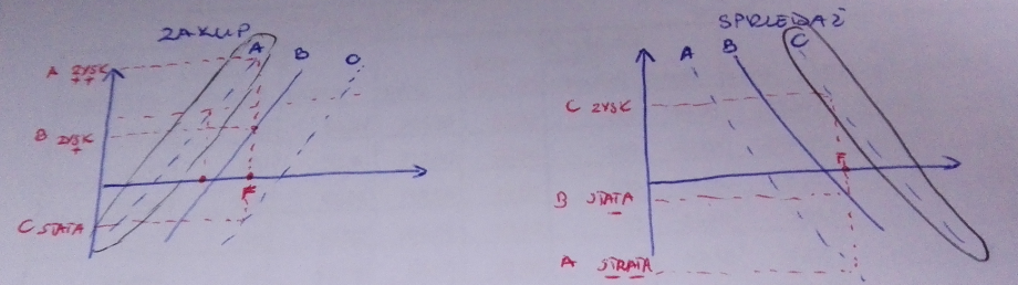 Dla zakupu przesunięcie F w lewo, aby szybciej osiągnąć zysk wybieramy najniższa cenę (A)