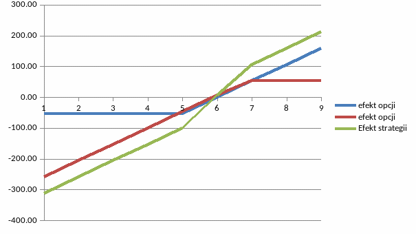 NP.: opcja LONG CALL + kontrakt PUT = opcja syntetyczna LONG PUT