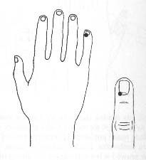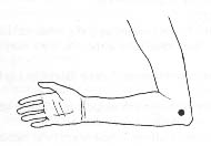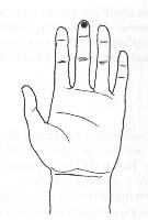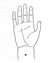 poprzeczne palce powyżej nadgarstka, na przedłużeniu kciuka.
