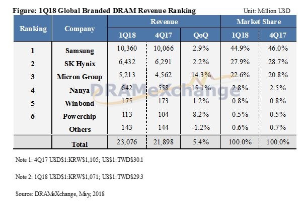 liderów branży DRAM. W pierwszym kwartale 2018 roku Samsung
