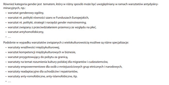 Warsztaty homofoniczne i mniejszości seksualnych – wątek ideologicznie przetwarzany.