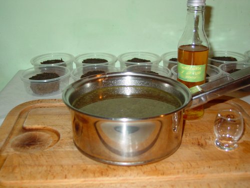1:1 z wodą dodać liście laurowe, jałowiec, ziele angielskie,
