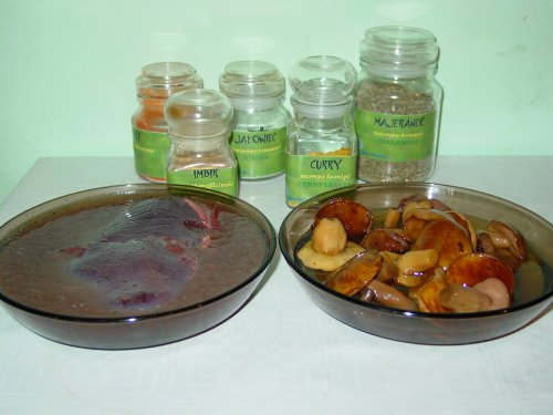goździki, 1 łyżkę majeranku, rozmaryn, tymianek, 2 łyżki