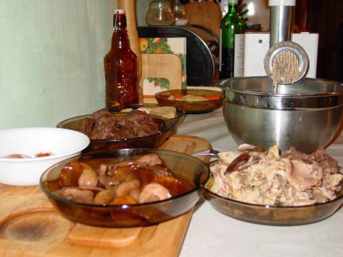 Zemleć przygotowaną masę na bardzo drobnym oczku, raz