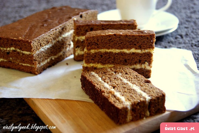 dzielimy na dwie części i przekładamy nią piernik. Gotowe ciasto