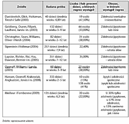Tabela 2.3. Zestawienie wyników badań nad regresem we wczesnym rozwoju dzieci