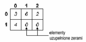 Poszczególne wiersze tablicy wyróżnione są nawiasami klamrowymi. Nawiasy te można pominąć.
