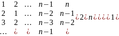 Wygenerować (1) macierz jednostkową oraz (2) macierz w postaci jak poniżej