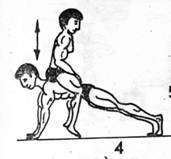 Jeżeli mamy do dyspozycji osobę, która jest w domu z nami podczas treningu, można poprosić ja o pomoc(oczywiście nie powinien być to wyrośnięty wujek ważący grubo ponad 100kg) i wykorzystać osobę tą jako ciężar podczas robienia pompek(wersja dla zaawansowanych)-rys.4