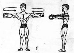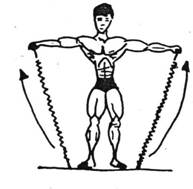 -wykonanie-stajemy w lekkim rozkroku, plecy prosto, ramiona lekko ugięte w łokciach, wyciągnięte przed siebie, równolegle do podłogi przez cały czas trwania ćwiczenia, rączki ekspandera w dłoniach. Z tej pozycji wykonujemy ruch „rozkładania” ramion, jednocześnie rozciągając ekspander. Tempo ruchu umiarkowane, lub wolne ze stałym napięciem mięśni obręczy barkowej. W szczytowym momencie ruch możemy zatrzymać na chwilę dla lepszego napięcia mięśni. Ruch kończymy, gdy ramiona znajdą się w jednej linii(lub nieco dalej)z plecami. Powrót do pozycji wyjściowej wolny i pod pełną kontrolą