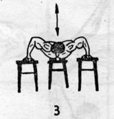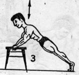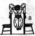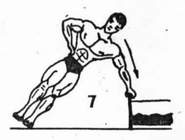 Ćwiczenie to wygląda identycznie, jak pompki na poręczach z tą różnicą, że poręcze zastępujemy krzesłami z oparciami-rys.8-Ruch jest identyczny, jak w ćwiczeniu na poręczach