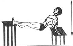 -wykonanie- Ćwiczenie to polega na wykonywaniu ruchów opuszczania i unoszenia tułowia podpierając się ramionami o ławkę z tyłu, a nogi pozostają (działając jak zawias)oparte na drugiej ławce(dobrze jest, gdy ławka ta jest nieco wyższa od tej, na której trzymamy ręce).Ramiona prostujemy do końca dla lepszego napięcia mięśni. Ruch opuszczania powolny, unoszenia nieco szybszy.
