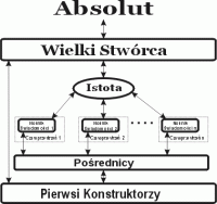 Jak wynika ze schematu, Absolut – nieograniczony, nieprzejawiony i wieczny bezosobowy Bóg – z Siebie wydziela Część w postaci Wielkiego Stwórcy, który tym samym reprezentuje Go, stając się w efekcie Bogiem osobowym. Wielki Stwórca kreuje Pole Nieskończonych Możliwości (omówione w części drugiej cyklu "Tajemnice Istnienia") i zapoczątkowuje proces przejawiania się rzeczywistości, wykorzystując do tego Pierwszych Konstruktorów, którzy, jako Istoty, pełnię wiedzy dotyczącej rozwoju świadomych siebie form zdobyli w poprzednim etapie Wielkiego Eksperymentu i w swojej istocie stanowią świetlistą, w pełni świadomą emanację swojego Stwórcy.
