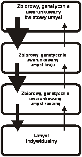 Trudnodostępnych warstw nieświadomości zbiorowej nie należy mylić ze zbiorowym, genetycznie uwarunkowanym umysłem, który, jak wcześniej wspomnieliśmy, głównie stanowi sobą zbiór przekonań, dotyczących powszechnie akceptowalnych modeli i stylów życia, i jego elementy zawierają się zarówno w nieświadomości zbiorowej, jak i w dostępnych warstwach ludzkiej podświadomości.